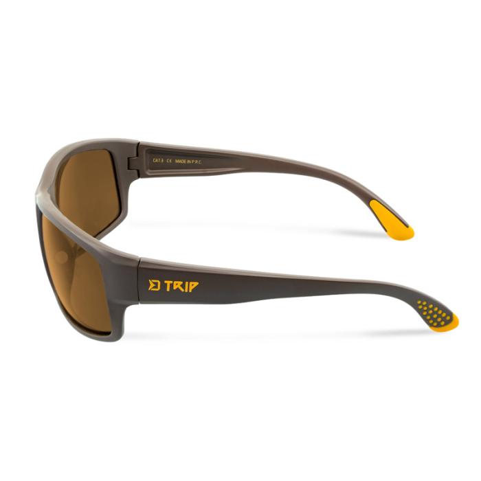 Перфектният партньор за риболов и пътуване. Поляризиращите очила SG TRIP предлагат модерен дизайн и впечатляваща комбинация от кафяв и жълт цвят. Пакетът съдържа очилата, твърд транспортен калъф с карабинка, която можете да закачите навсякъде, където имате нужда - жилетка за риболов, раница или багаж. Очилата са с КАФЯВИ стъкла. Самата рамка е леко разширена отстрани и осигурява защита от слънчевите лъчи в периферията. Дръжките са снабдени с гумени покритие в краищата, за да се предотврати нежелано плъзгане по главата. Гумените повърхности на носа също допринасят за удобното носене. В случай, че поляризиращите очила SG TRIP паднат във водата, няма причина за притеснение, защото те ще останат на повърхността.