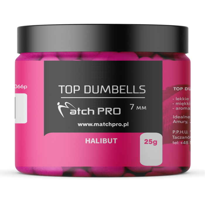 Серия от 7 mm топчета-дъмбели с най-високо качество. Продължителното и обширно проучване на тези топчето подпомогна тяхното рафиниране, така че те да бъдат високоефективни при всички условия. Matchpro Top Dumbbells се отличават, поради идеалната им мекота, като рибата може лесно да ги захапе. Изключителната лекота на тази захранка означава, че тяхното движение във водата е изключително естествено, което значително подобрява резултатите от риболова. Top Matchpro Dumbbells са много ароматни, като те освобождават своя аромат равномерно във водата за дълъг период от време, което означава голям брой клъввания. Топчетата се предлагат в различни вкусове и цветове, така че всеки рибар да може да се адаптира към актуалните условия.